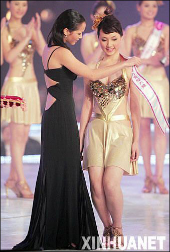 10月28日,来自中国香港的黄倩婷(右)获得“魅力秀发大奖”。 新华社记者 周磊摄
