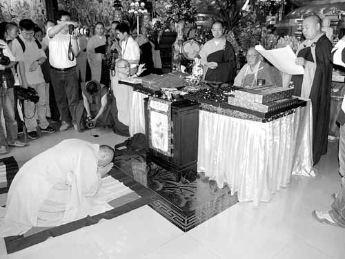 在昨天的接法仪式上,仲巴活佛称,此次拜师盛举既是缘于先辈结下的法缘,也缘于他钦佩年逾百岁的佛门泰斗本焕长老对佛学的贡献和为人。